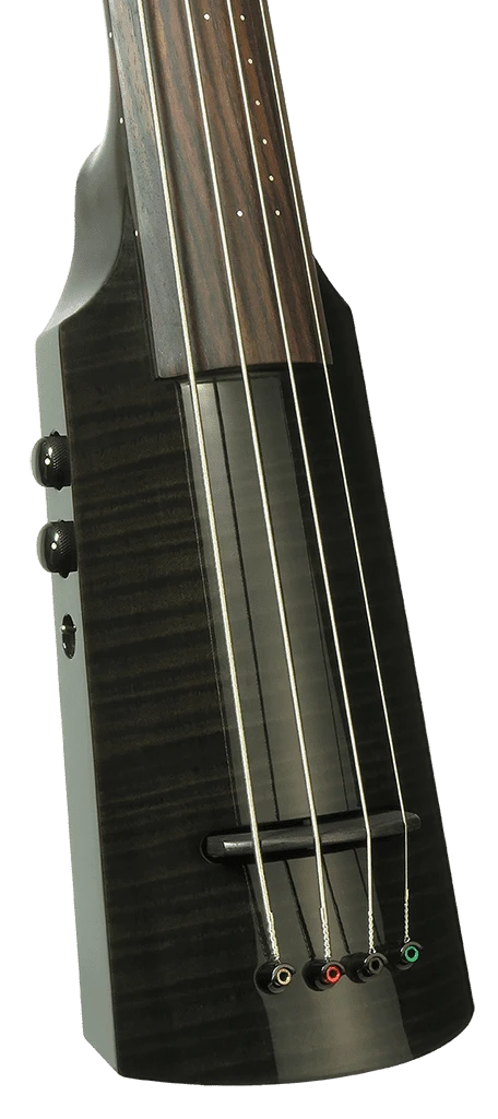 The NS Design Omni Bass WAV5c Transparent Black with the familiar 34 inch bass guitar scale, is designed for the bass guitarist interested in adding the character and expressiveness of an acoustic upright bass, or the NS electric upright, to their performance palette. Available in four and five string configurations, with a variety of color options in a high gloss finish.