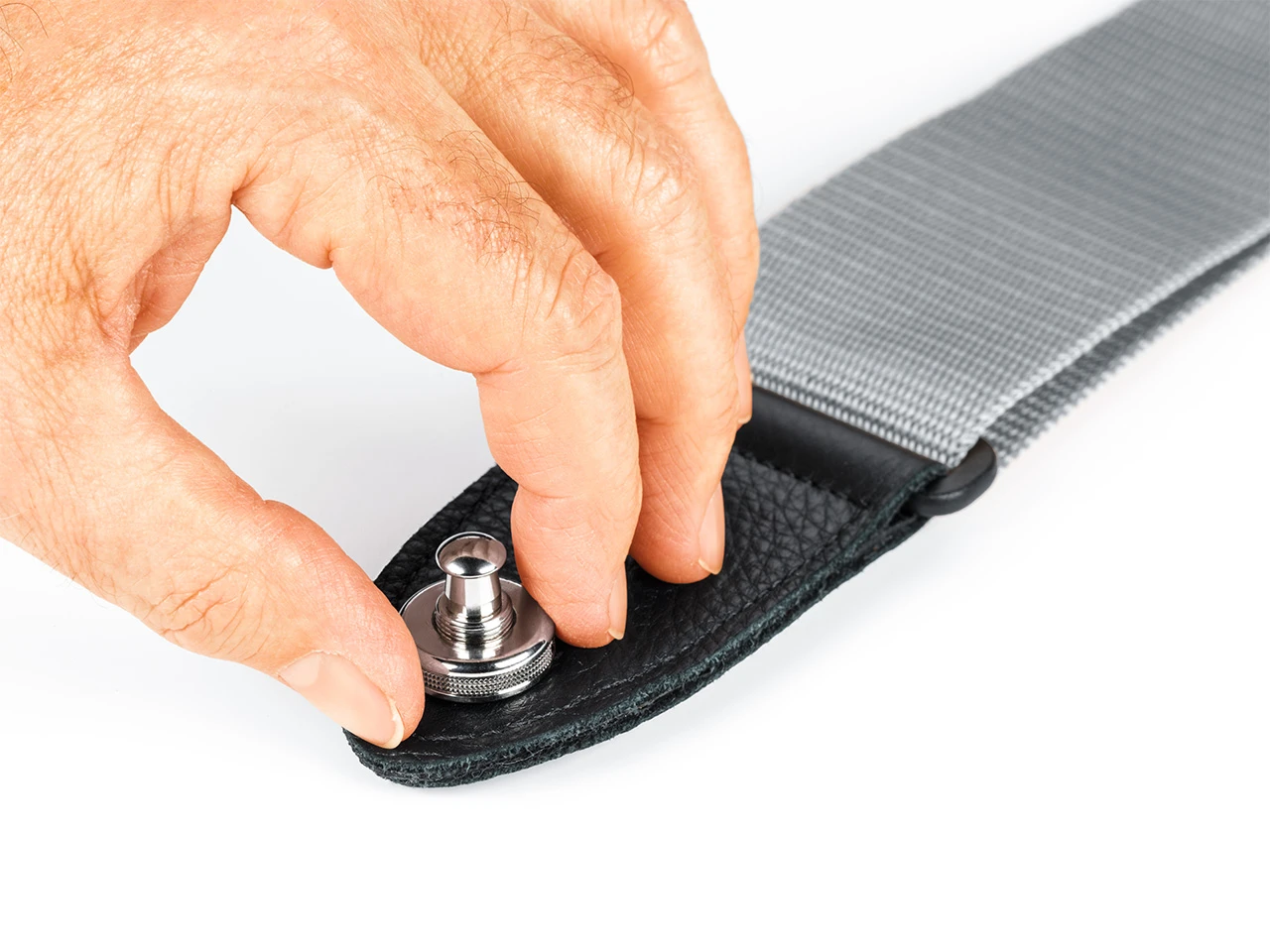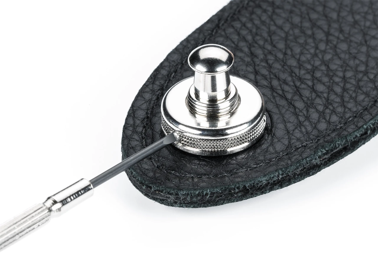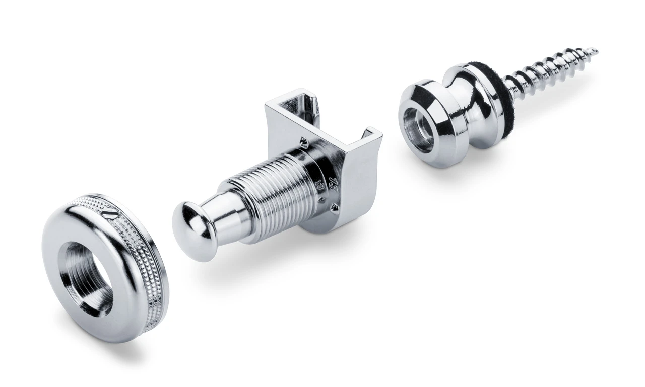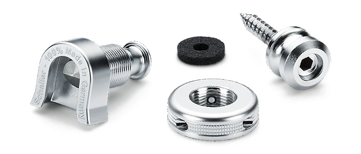 The New Schaller S-Locks Strap Locking System. A unique solid one-piece strap button in hardened steel with self-tapping wood thread. Simply screw it on with an Allen key (size 3 mm).