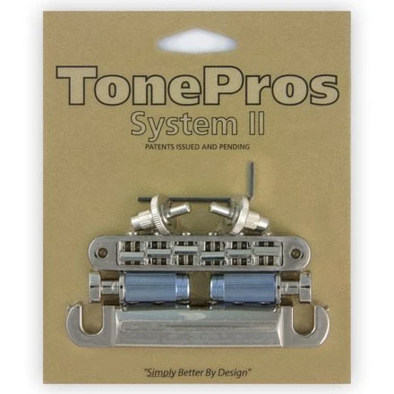 The TonePros System II Bridge and Tailpiece components come as a package set, ready to install on your guitar. The package includes: 1. TonePros Patent Issued System II Bridge with matching threaded adjustment posts. 2. TonePros Patent Issued System II Tailpiece with matching threaded adjustment studs. 3. Allen style adjustment tool for use with both bridge and tailpiece. The LPS02 includes the TonePros TP6 Bridge and T1ZS Tailpiece. These matched bridge and tailpiece are Standard thread and fit most USA guitars without modification. Bridge Post to Post Spacing: 74mm Tailpiece Stud to Stud Spacing: 3.22 inches/ 82mm