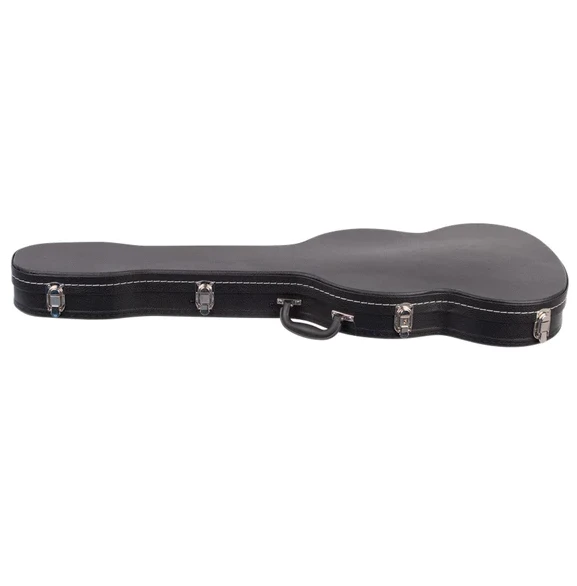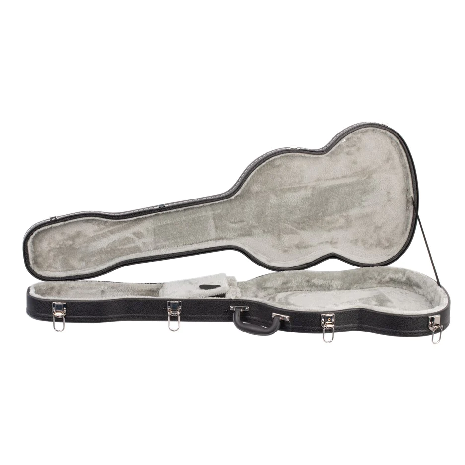 V-Case SG shaped plywood electric guitar hardcase covered in black vinyl. Arched top, grey plush lined interior and covered accessory compartment. Black.